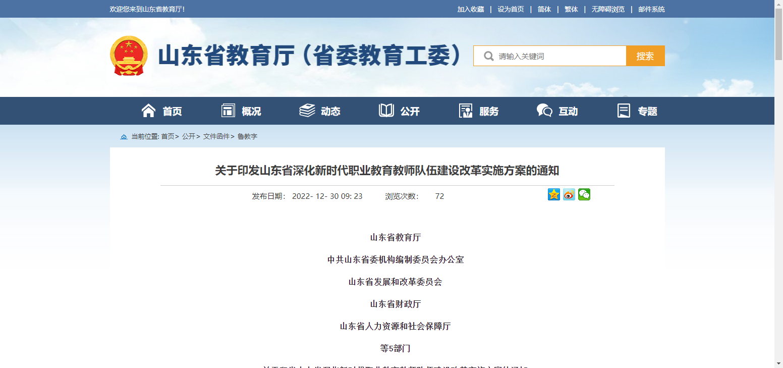 近日,山东省教育厅等五部门出台《山东省深化新时代职业教育教师队伍建设改革实施方案》,通过建强职业技术师范教育基地等17条措施,全面提高职业院校教师质量,打造省部共建职业教育创新发展高地升级版。 ......