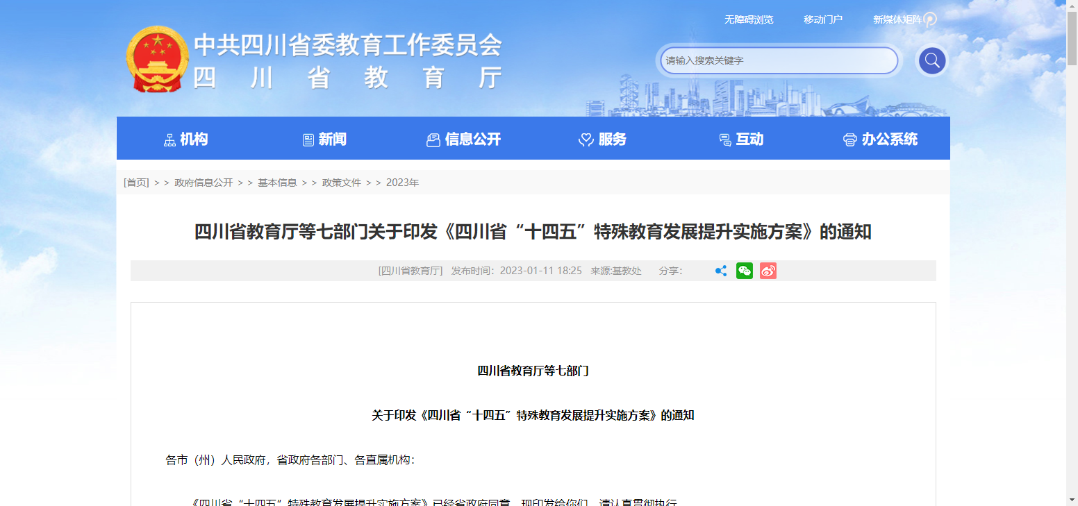 七部门关于印发《四川省“十四五”特殊教育发展提升实施方案》的通知